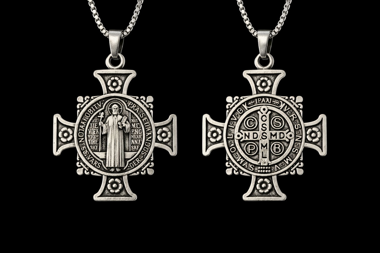 St. Benedict Cross Medal Necklace – Protection Prayer Pendant