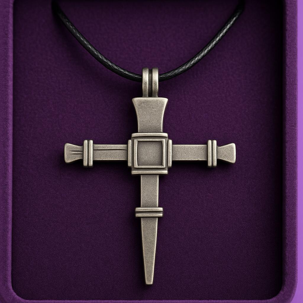This bold nail cross pendant necklace is crafted to remind us of the sacrifice at Calvary. Designed with a rugged, antique-metal look and paired with a durable black cord, it makes a meaningful piece of Christian jewelry for daily wear, gifts, or ministry use.