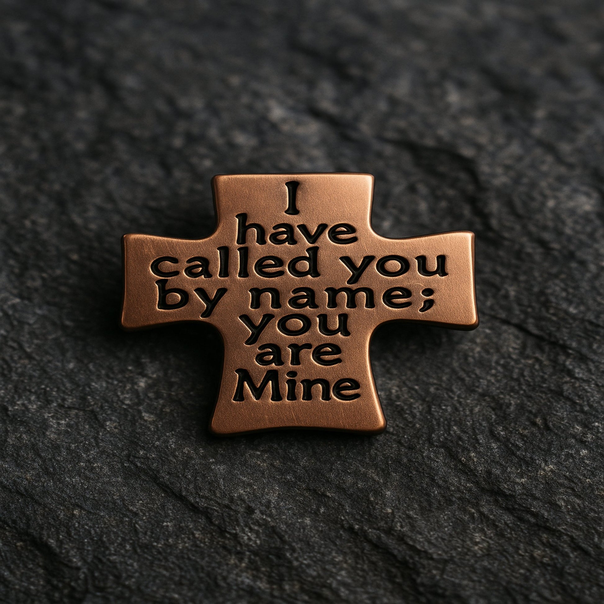 A reminder of God’s personal love and calling, this bronze cross lapel pin with powerful scripture engraved is great for ministry, outreach, lanyards or lapels. “I have called you by name; you are Mine,” this pin is a comforting symbol of faith and belonging for you or someone you care about.